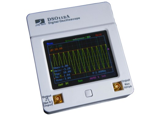 Этот удобный небольшой портативный осциллограф имеет 1 канал и настраиваемый функциональный генератор, а также имеет чрезвычайно низкую цену. Всего за } у вас есть прицел 2 МГц с внутренней батареей и разъемом micro-USB для зарядки. Осциллограф оснащен сенсорным экраном диагональю 2,4 дюйма и разрешением по вертикали 8 бит. Кроме того, прицел имеет выходной сигнал прямоугольной формы с регулируемой частотой. Это устройство также имеет сертификат CE.