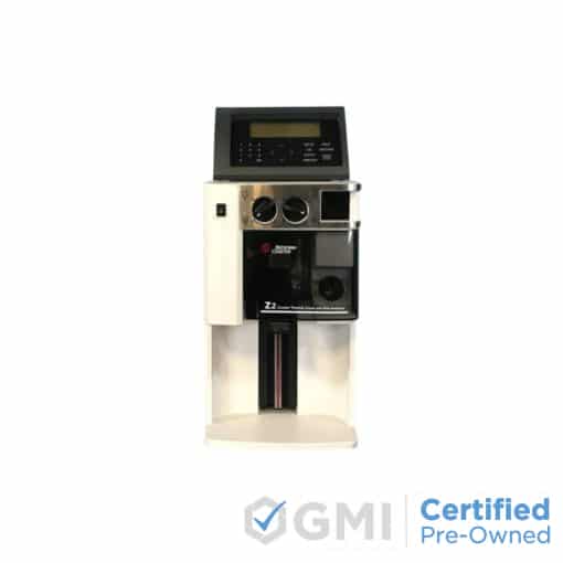 Product Description Mercury Free Sample result averaging Size distribution graph and tabular data PC data acquisition via Windows based software One-button calibration Built-in user test functions The Beckman Coulter Z2 is the latest cell and particle counter of the Z Series. Following the Z1, this model also makes use of the Coulter Principle known as the Electrical Sensing Zone Method for counting and sizing cells. Accuracy, speed, versatility and reproducibility is expected in the application of this technique. In addition to reporting both count and concentration results, the Beckman Z2 can provide size distribution of the cell population as well. This particle counter also has the ability to display various data between user selectable areas of the graph including the entire size distribution graph as well as the size statistics and counts. Moreover, the cursor positioned on the graph aids in determining the cumulative count and the cumulative number percent above and below a size. The Beckman Coulter Z2 Cell and Particle Counter can average counts and channelized data from a series of up to 10 consecutive analyses. Greater statistical confidence in the result as well as a smoother shape of the averaged size distribution can be obtained as the number of cells counted and sized is increased. Specifications Overall Analysis Range 1 um to 120 um diameter Dynamic Range of Aperture Dual Threshold Up to 6.3:1 by diameter Up to 256:1 by volume Metered Volumes 100 / 500 / 1000 ul Resolution User selectable Linearity Linear response +/- 1% of pulse height over selected range Typical Count Precision >, 1% CV Power Consumption Less than 55W Orifice Tube Sizes Aperture (50/70/100/140/200 um) Range (2-60% of aperture size) Ampoule Insertable Tubes 50 / 70 / 100 Number of Channels 64, 128, and 256 size distribution Printer Interface Centronics parallel, IBM compatible 25-pin connector Power requirements 100-120V AC +/- 10% 10/60 Hz Dimensions 46 cm (H) x 27 cm (W) x 36 cm (D) Weight 13.6 kg Operating System Windows 95 / 98 / 2000 / NT