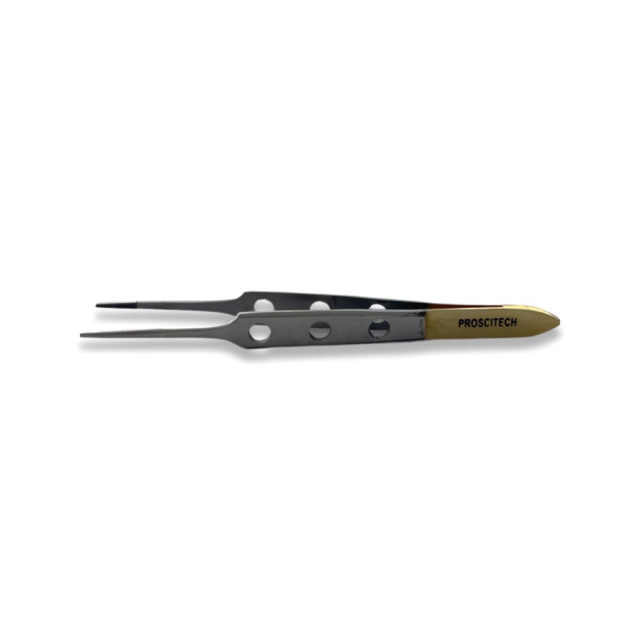 Tungsten carbide instruments are made of stainless steel with a layer of tungsten carbide bonded to the working surface. TC, next to diamond, is the hardest material, making it suitable for cutting and frequent grabbing of hard materials. TC instruments are very durable and can be used for frequent cutting and handling of hard substances without wear of the working surfaces. The handles are coated with a thin layer of gold to differentiate these from non-TC instruments.