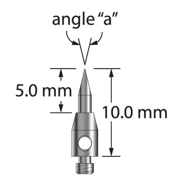 Описание Щуп M2 с твердосплавным наконечником под углом 60 градусов и основанием из нержавеющей стали. Угол «а» = 90 градусов. Общая длина иглы составляет 10,0 мм. Вес иглы 0,40 грамма. Технические характеристики