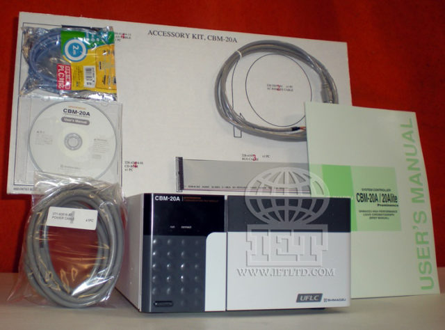 Refurbished Shimadzu CBM-20A controller (CAT NO 228-45012-32) OPTIONAL: bus cable, power cable, LAN cable, AC remote cable and CD-ROM. New-in-the-box and refurbished modules available. Up to eight modules can be connected. Adding up to two A/D conversion boards makes it possible to accept an analog signal from non-Shimadzu detectors.