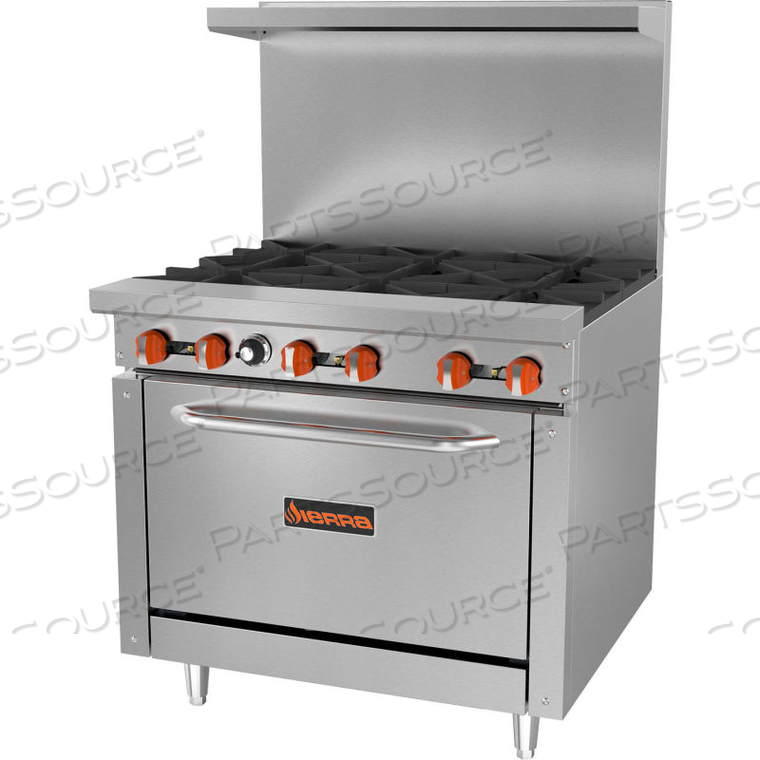 СЕРИЯ SIERRA — РЕСТОРАННАЯ СЕРИЯ, 6 КОНФОРК, ПРИРОДНЫЙ ГАЗ, ДУХОВКА, НЕРЖАВЕЮЩАЯ СТАЛЬ, ЧУГУННЫЕ КОНФОРКЕРЫ
