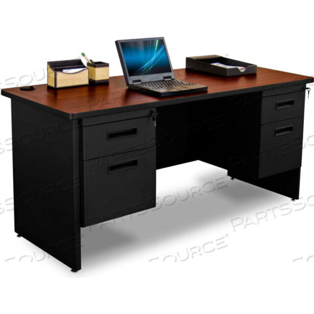 СТАЛЬНОЙ СТОЛ — ДВОЙНАЯ ПЬЕДЕСТАЛКА — 60 X 24 — ЧЕРНЫЙ/КРАСНОЕ ДЕРЕВО