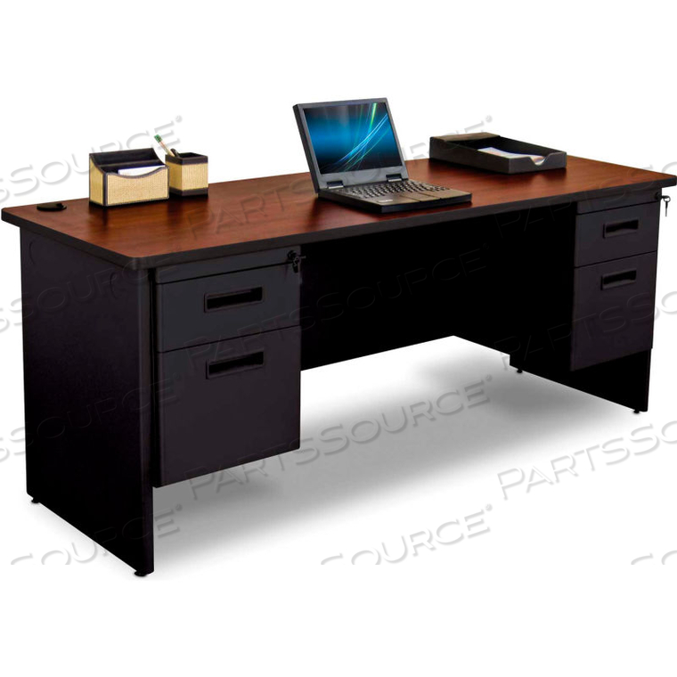 СТАЛЬНОЙ СТОЛ — ДВОЙНАЯ ПЬЕДЕСТАЛКА — 72 X 24 — ЧЕРНЫЙ/КРАСНОЕ ДЕРЕВО