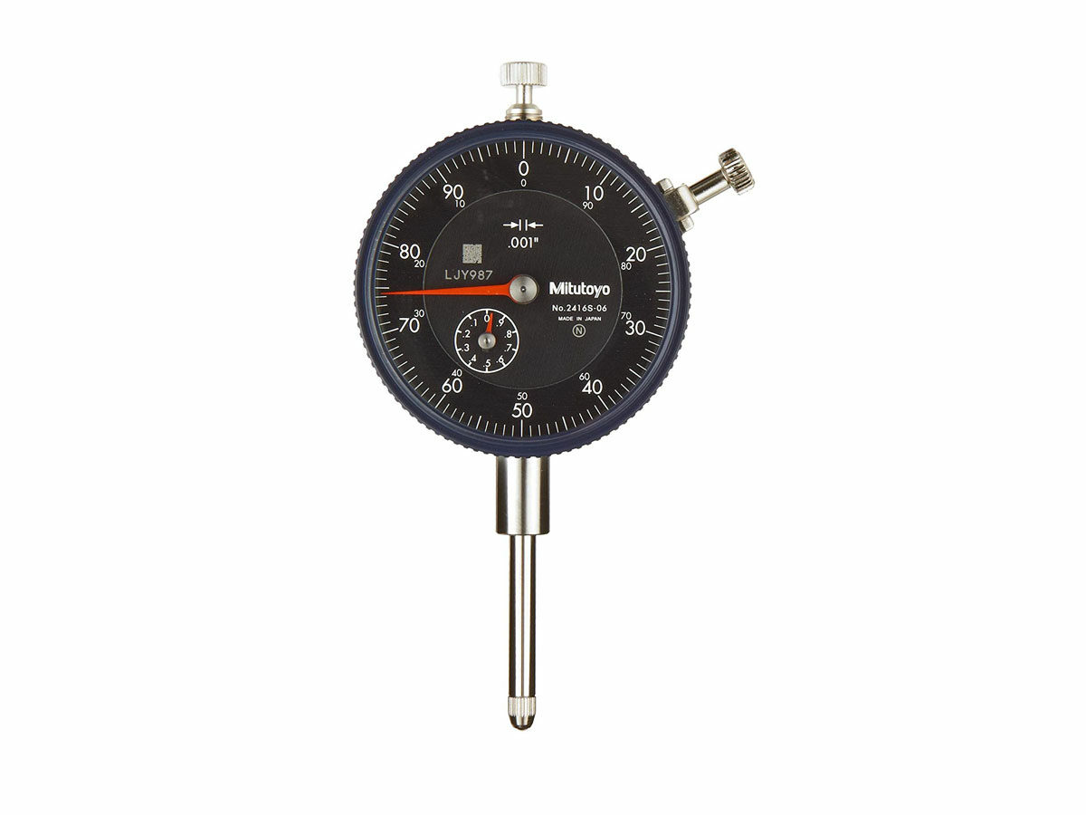 The Mitutoyo inch reading dial indicator performs with excellent accuracy and reliability, and it is available in several graduations and ranges for use in the widest range of applications. The stem and spindle are constructed of hardened, high-strength steel, and the jeweled bearing provides wear resistance and low friction movements for smooth, precise operations. Secured adhesion between the frame and crystal, along with the use of an O-ring, protects the indicator against water and oil permeation via the front face. The crystal has a scratch and glare-resistant coating for clearer readings and better durability. The outer clamp and optional lifting lever can be attached to either side and can be easily installed or removed without the use of tools.