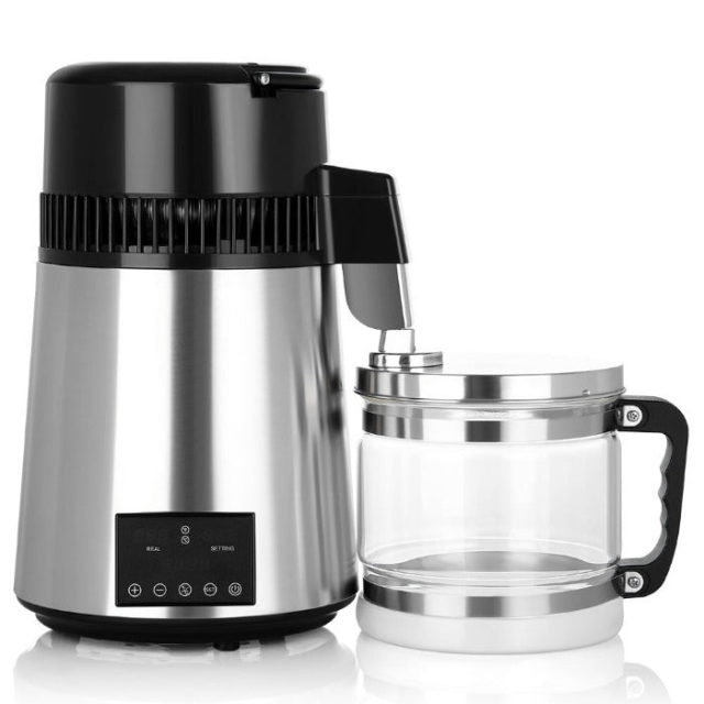 Water Distiller Stainless Steel Glass Bucket Dual Screen Touch 750W 4L 1L/H. Precision polishing stainless steel shell and high quality edible stainless steel liner. High hardness and large capacity glass watter bottle. Sensitive touch, convenient adjustment, bring better operating experience. Anti-dry burning function. 304 stainless steel water tray and barrel body. Head assembly handle, easy to handle. 304 stainless steel nozzle, surface fine polishing, clean and beautifu. Four aluminum fan blades, heat dissipation fast, enhance the service life of products. Aluminum condemsing tube, short cooling time, fast water outlet speed. Help you improve the quality of water.