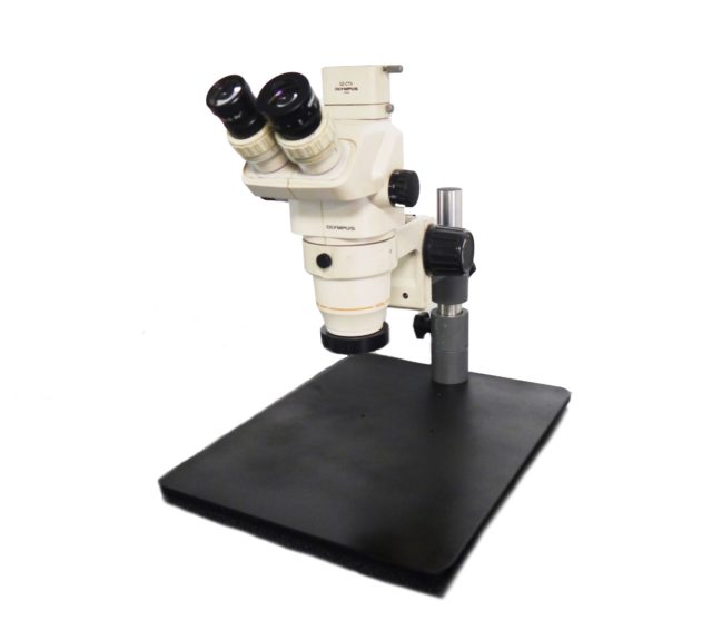 Стереомикроскоп Olympus с увеличением, длинной подставкой и системой камер микроскопа. Очень прочная подставка для микроскопа, обеспечивающая расширенный диапазон обзора больших образцов.