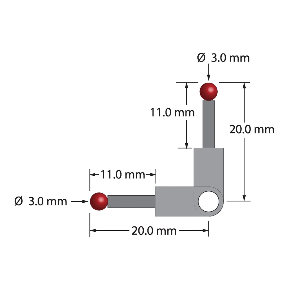 Описание Стилус XXT, 90 градусов. Центральный фитинг из титана со сквозным отверстием 3,5 мм. Два стержня из углеродного волокна Therm-X диаметром 2,0 мм с рубиновыми шариками диаметром 3,0 мм. Используется с зажимным винтом или зажимным щупом для создания датчика под прямым углом. Вес стилуса составляет 1,34 грамма. Сравните с Zeiss 626103-0303-020. Технические характеристики