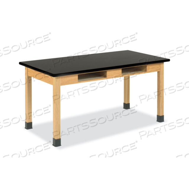 СТОЛ ДЛЯ НАУЧНЫХ ИССЛЕДОВАНИЙ С ОТДЕЛЕНИЕМ ДЛЯ КНИГ, 60 Ш X 24 Г X 30 В, СТОЛЕШНИЦА ИЗ ЧЕРНОГО ЛАМИНИРОВАННОГО ПЛАСТИКА ВЫСОКОГО ДАВЛЕНИЯ (HPL), ОСНОВАНИЕ ИЗ ДУБА