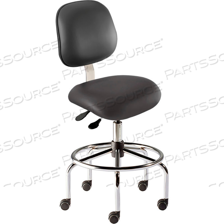 АНТИМИКРОБНЫЙ ТАБУРЕТ, ВЫСОТА СИДЕНЬЯ 25-32, ЧЕРНЫЙ ВИНИЛ — ОСНОВАНИЕ ИЗ ХРОМИРОВАННОЙ СТАЛИ — СЕРИЯ ELITE