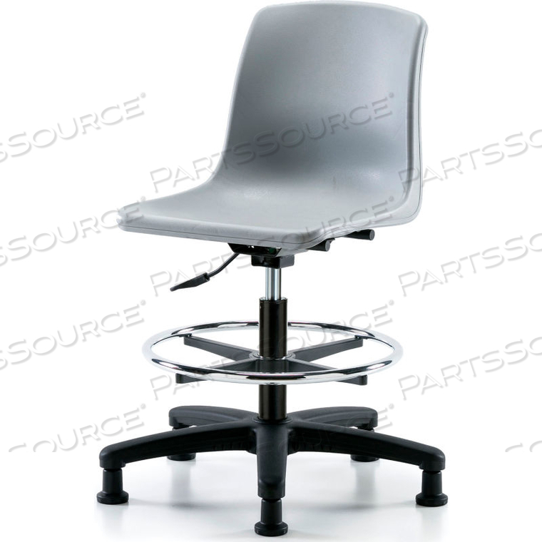 СИДЕНИЕ ЦЕЛЬНЫЙ ПЛАСТИКОВЫЙ ТАБУРЕТ — С ХРОМИРОВАННЫМ КОЛЬЦОМ ДЛЯ НОГ — СЕРЫЙ