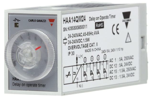 Таймер Carlo Gavazzi типа HAA представляет собой таймер задержки срабатывания с 4 встроенными функциями и выбираемым DIP-переключателем временем в диапазоне от 0,1 секунды до 100 часов. Доступен в конфигурации с 8-контактным 8A DPDT или 14-контактным 5A 4DPT с блейд-розеткой.