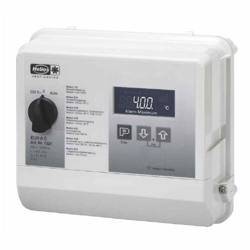Universal controller EUR 6 C Electronic control automatic with power supply unit operating on the phase control principle. Operation For control of central ventilation systems or for stepless control of one or several speed controllable 1 ph. fans. In domestic, commercial, industrial and agricultural applications.