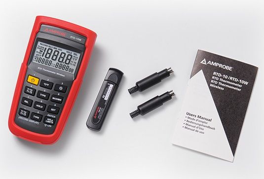 The Amprobe RTD-10W Wireless Dual Input Digital RTD Thermometer is the preferred choice for industrial process applications. It typically provides higher accuracy than thermocouples and maintains stability for many years.