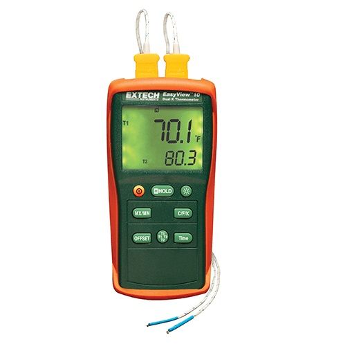EA10-NIST — это термометр EasyView с двойным входом. Базовый термометр типа K с широким диапазоном температур. Диапазон температур от -200 до 1999°F (от -200 до 1360°C) с разрешением 0,1°/1°. Особенности удержания данных, автоматическое отключение питания, индикация низкого заряда батареи и превышения диапазона. В комплекте со встроенной подставкой, защитным чехлом, двумя термощупами типа К и батареями.