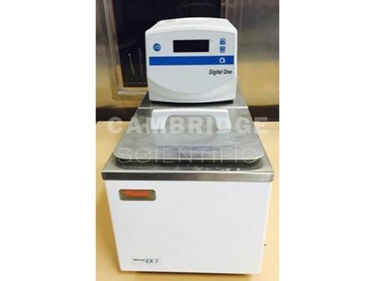 The Thermo Neslab EX-7 Circulating Water Bath is designed to provide temperature control for applications requiring a fluid work area or pumping to an external system. Unit consists of a circulation pump, seamless stainless steel bath, work area cover, and a microprocessor temperature controller