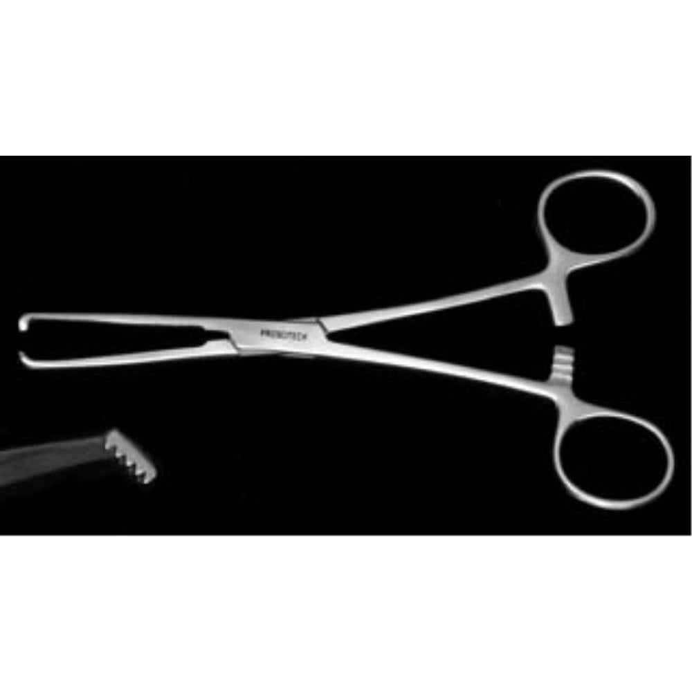 Allis tissue forceps are made from 420 stainless steel and have 4 x 5 teeth. They are 150mm in length, and have a ratchet clamp which locks the handles in place.
