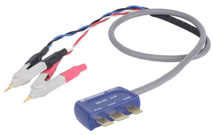 BK Precision TL8KC1 — это измерительные провода Кельвина, которые полезны при измерении конденсаторов с выводами, катушки индуктивности и резисторы. Длина кабеля составляет примерно 16 дюймов (40,64 см). При использовании с 880 защищенный провод уменьшает влияние импеданса и контактного сопротивления проводов, тем самым сводя к минимуму ошибки измерения и повышая точность, особенно в диапазоне более низких импедансов. TL8KC1 входит в комплект поставки модели 880.