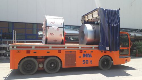 DTA supplied the first hybrid transporter of the world of 20 and 50 tons to move molds cast and spool in plant. The vehicle contemplated an electric traction system to operate indoors and a diesel one for long distances, also including a cabin intended to the comfort of the operator. These cabins were equipped with seats for two operators, a display to show information of working hours, battery level and also any possible failure in the vehicle. One of the advantages of this hybrid system (besides of no-contaminating when using it), is that the electric battery can be charged while the transporter is operating with diesel.