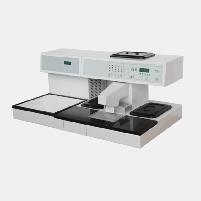 The Labec tissue embedding centre is a complete tissue embedding and cooling system that features a fully programmable computer control for automatic system start and stop any time (weekly). Designed with a flexible modular configuration, allowing the cryo module to be located on either the right or left of the embedding module. Heated working plate and forceps wells make tissue embedding more convenient and the large granite working area eases the cleaning of excess paraffin. Temperature throughout the centre is controlled by microprocessors and is displayed using colour-changing LEDs to enable clear visibility of working status. All areas of the centre are individually controlled and work independently without interference from each other, with automatic memory and restore functions.