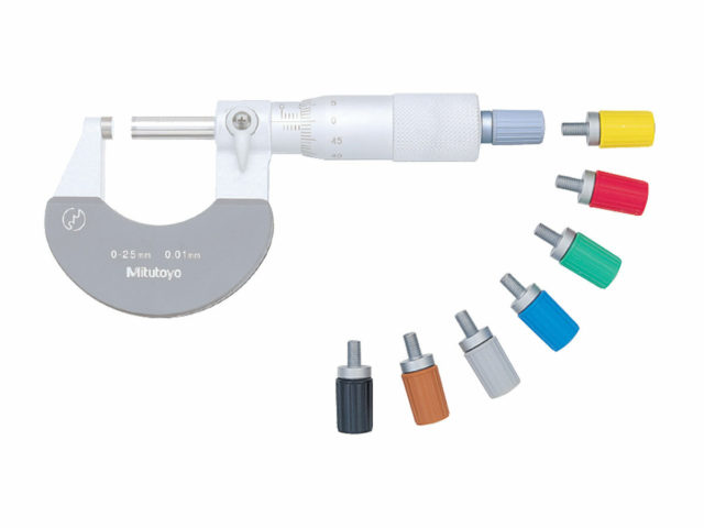 - Available in 6 different colors for ratchet stop micrometers up to 300mm/12″