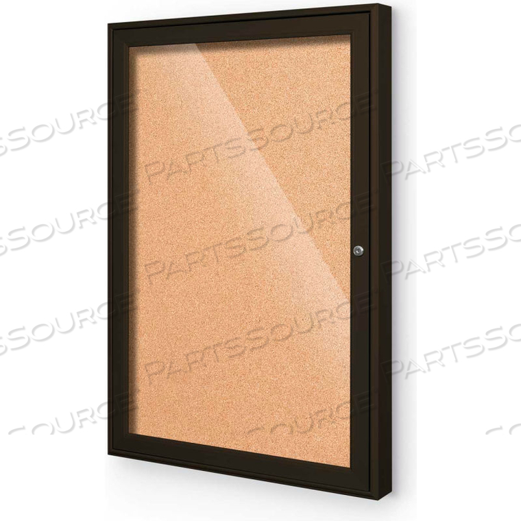 УЛИЧНЫЙ ЗАКРЫТЫЙ ШКАФ ДЛЯ ДОСК ОБЪЯВЛЕНИЙ, 1 ДВЕРЬ 18 Ш X 24 В, ОТДЕЛКА КОФЕЙНЫМ ЦВЕТОМ, НАТУРАЛЬНАЯ ПРОБКА