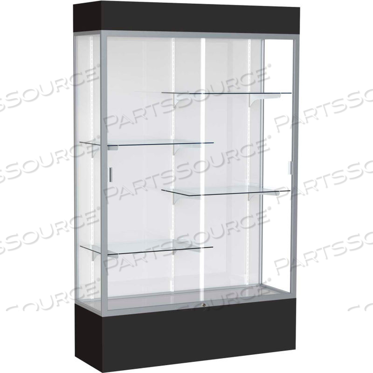 Витрина со светодиодной подсветкой SPIRIT 48W X 80H X 16D БЕЛАЯ ЗАДНЯЯ ЧАСТЬ, САТИНОВАЯ ОТДЕЛКА, ЧЕРНОЕ ОСНОВАНИЕ И ВЕРХ
