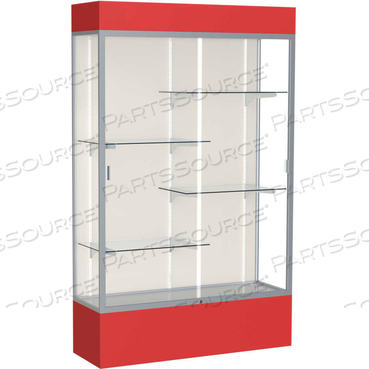 Витрина со светодиодной подсветкой SPIRIT 48 Ш X 80 В X 16 Д, задняя панель с атласной отделкой, красное основание и верхняя часть