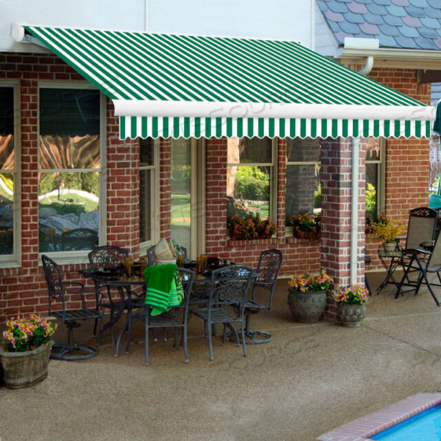 RETRACTABLE AWNING MANUAL 10W X 8D X 10H FOREST GREEN/WHITE