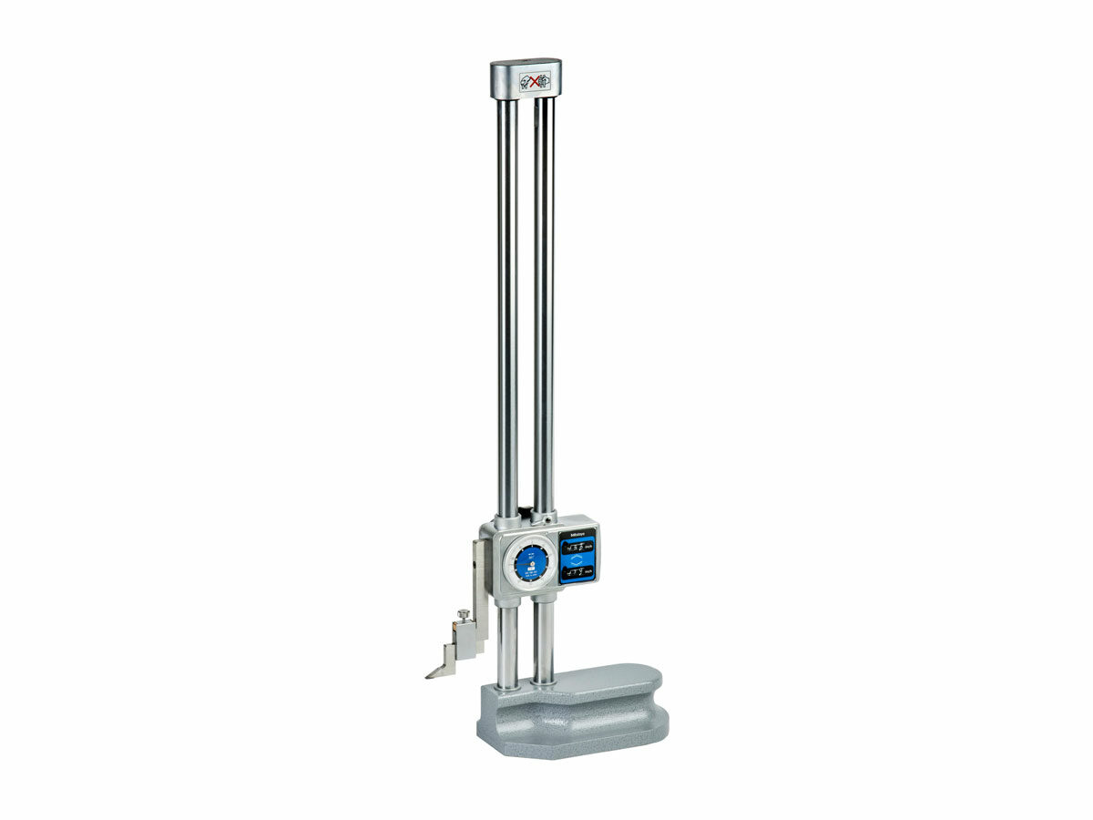 The Mitutoyo dial height gage provides precise height in a unit that is easy to use. The height gage has a rigid, double-column structure which ensures high measuring accuracy and repeatability. The included carbide-tipped long scriber is highly durable and provides accurate marks on your workpiece. The dial and digital counters can be re-zeroed at any scriber position.