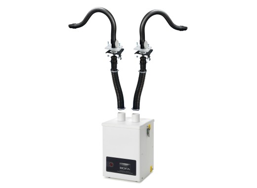 The Bofa WLA 250 is a high quality soldering fume extractor that has 2 inlets, so it can be used on 2 workplaces. The WLA 250 is known for its exceptionally high filter efficiency of 99.997%, which means that the extractor can filter 99.997% of particles larger than 0.3m from the air. The extractor has an active carbon filter and a HEPA filter.