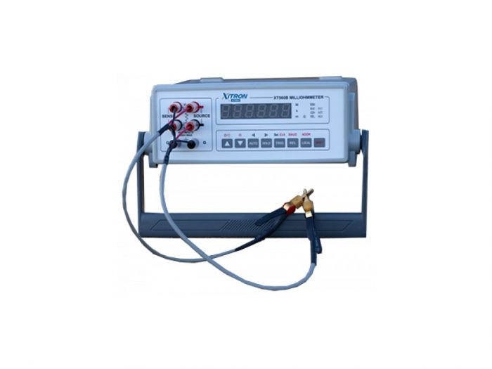 The XT560B Digital Milliohmmeter is a dedicated, fully automatic instrument that selects the optimal test current, from 100nA to 100mA DC to accurately measure resistances from 10μΩ to 33MΩ. The XT560B will auto range between 9 ranges, or can be manually set to a fixed range. The XT560B includes a set of Kelvin test clip leads for making four-terminal measurements. The XT560B is ideal for measuring wiring or cable resistances, windings of motors or generators, lamp filaments, cable splices, wire-to-terminal resistances, heating elements, contact resistance of breakers or switches, connector quality/resistance, fuse resistances, transformers, and grounding connections.