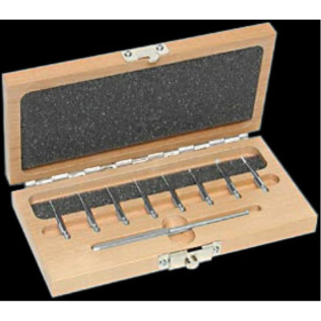 Hardwood storage box for 8 micro-tool tips and 1 handle.