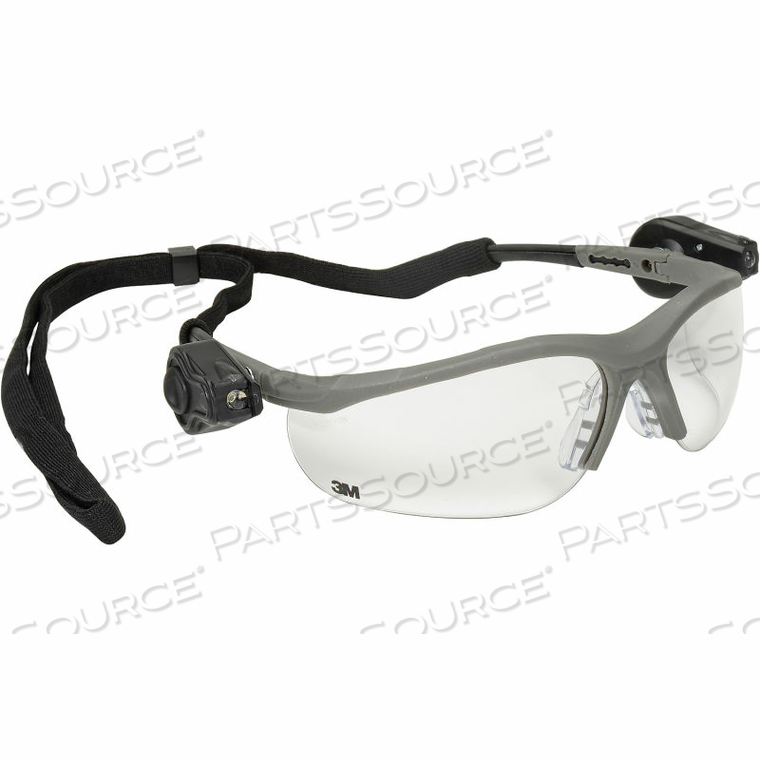 ЗАЩИТНЫЕ ОЧКИ С 2 СВЕТОДИОДАМИ, ПРОЗРАЧНЫЕ НЕЗАПОТЕВАЮЩИЕ ЛИНЗЫ, СЕРАЯ ОПРАВА
