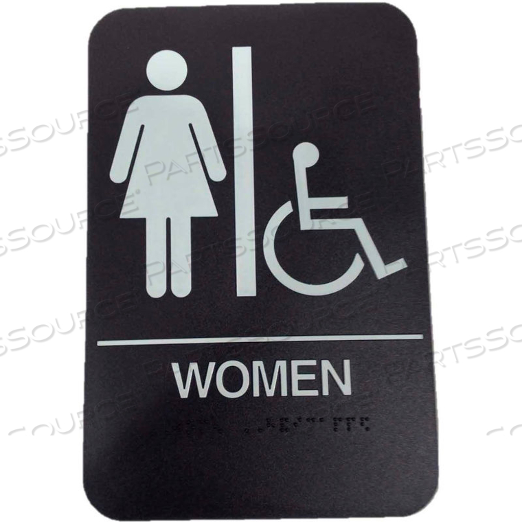 ЗНАК ADA ДЛЯ ЖЕНЩИН/ИНВАЛИДОВ, 6 X 9, ЧЕРНЫЙ С ВЫПУКЛЫМИ БЕЛЫМИ БУКВАМИ