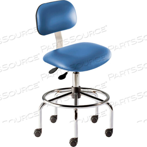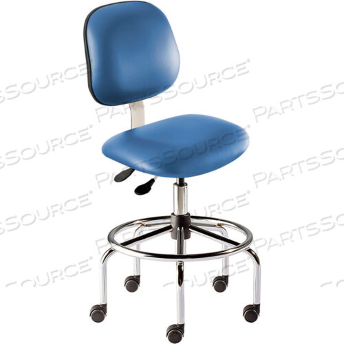 ТАБУРЕТ АНТИМИКРОБНЫЙ, ВЫСОТА СИДЕНЬЯ 25-32, СИНИЙ ВИНИЛ — ОСНОВАНИЕ ИЗ ХРОМИРОВАННОЙ СТАЛИ — СЕРИЯ BRIDGEPORT