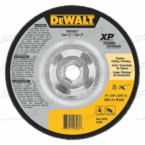 OEM#: DWA8931ОТРЕЗНОЙ КРУГ 6600 ОБ/МИН 9 ДИАМЕТР ТИП 27 от DeWalt