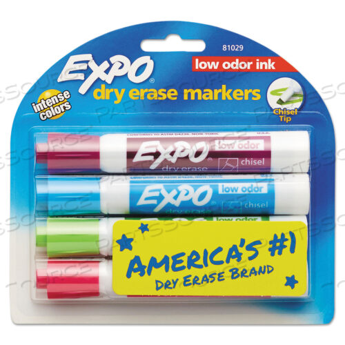 OEM#: 80653LOW-ODOR DRY ERASE MARKER STARTER SET, BROAD CHISEL TIP, ASSORTED COLORS, 4/SET by Expo