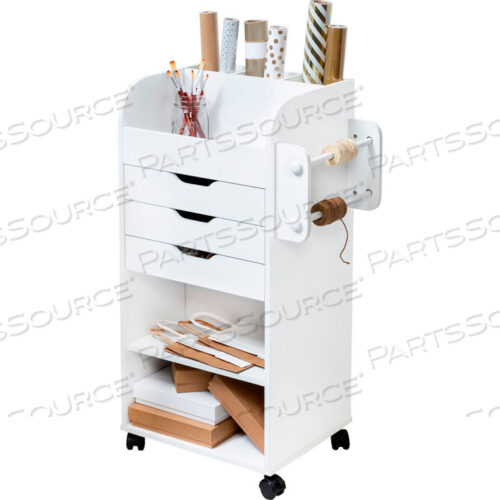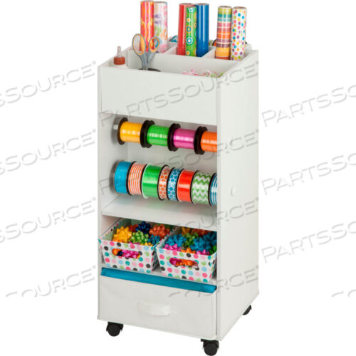 ТЕЛЕЖКА ДЛЯ ХРАНЕНИЯ РУКОДЕЛИЯ С КОРЗИНОЙ ДЛЯ ТКАНИ — 16-5/8 Д X 17-3/4 Ш X 33-7/8 В — БЕЛАЯ