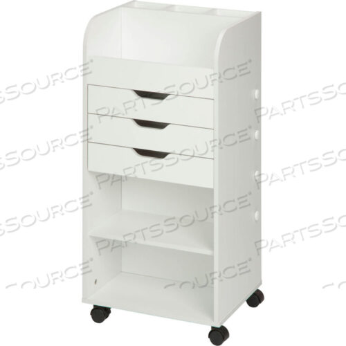 ТЕЛЕЖКА НА КОЛЕСАХ ДЛЯ ХРАНЕНИЯ ВЕЩЕЙ — 3 ЯЩИКА, 2 ПОЛКИ, 19-5/16 X 13-5/8 X 33-3/4 БЕЛАЯ