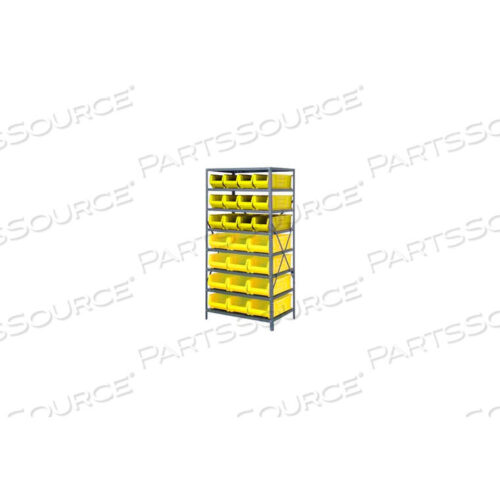 OEM#: 1875-SB804YL1875-SB804 STEEL SHELVING WITH 35 8H PLASTIC SHELF BINS YELLOW, 36X18X75-SB8 SHELVES by Quantum Storage Systems