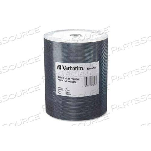 OEM#: 97016DVD-R, 16X SPEED, 4.7GB, INKJET PRINTABLE, WRAPPED, 100/PK, WHITE by Verbatim